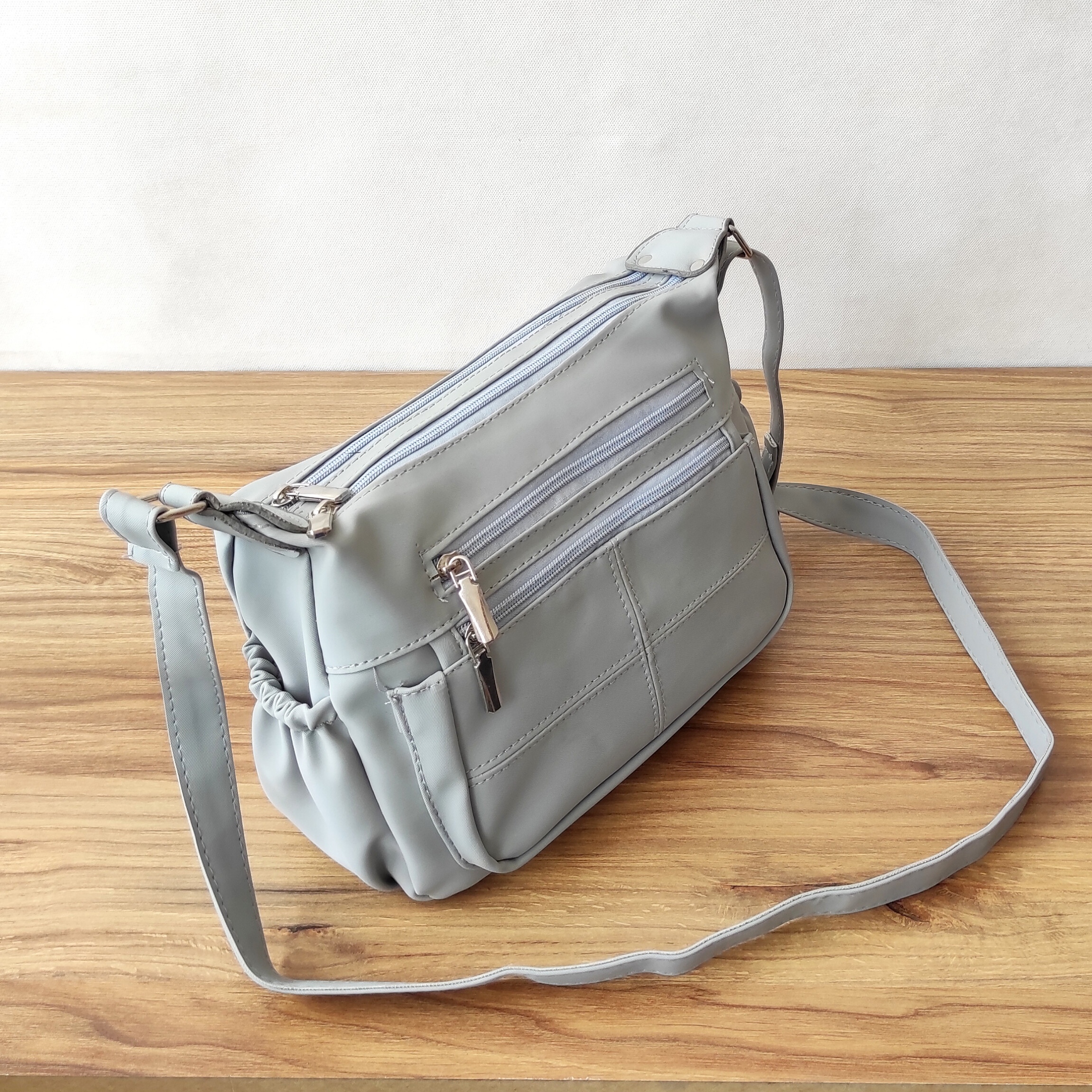 استایل و کاربرد : کیف دوشی زنانه مناسب روزمره مدل سانای از باکیفیت ترین و کاربردی ترین کیفهای موجود در فروشگاه هست که مناسب برای استایل روزمره میباشد . این کیف بخاطر زیپ های زیادی که دارد مورد استقبال خانم های با وسایل زیاد روزمره ، قرار گرفته و بخاطر ابعاد مناسب و رنگبندی خنثی با انواع لباس ها و انواع رنگها براحتی استایل میشود . خانم هایی که علاوه بر ظاهر زیبای کیف، به کاربرد و جادار بودن کیف اهمیت میدهند این کیف یک گزینه عالی برای اونهاست کیف دوشی زنانه سانای با رنگهای خنثی و کاربردی طوسی و مشکی برای استایل کردن سریع و راحت روزانه با انواع لباس ، کفش ، شال و روسری، بسیار عالی و مناسب میباشد.
