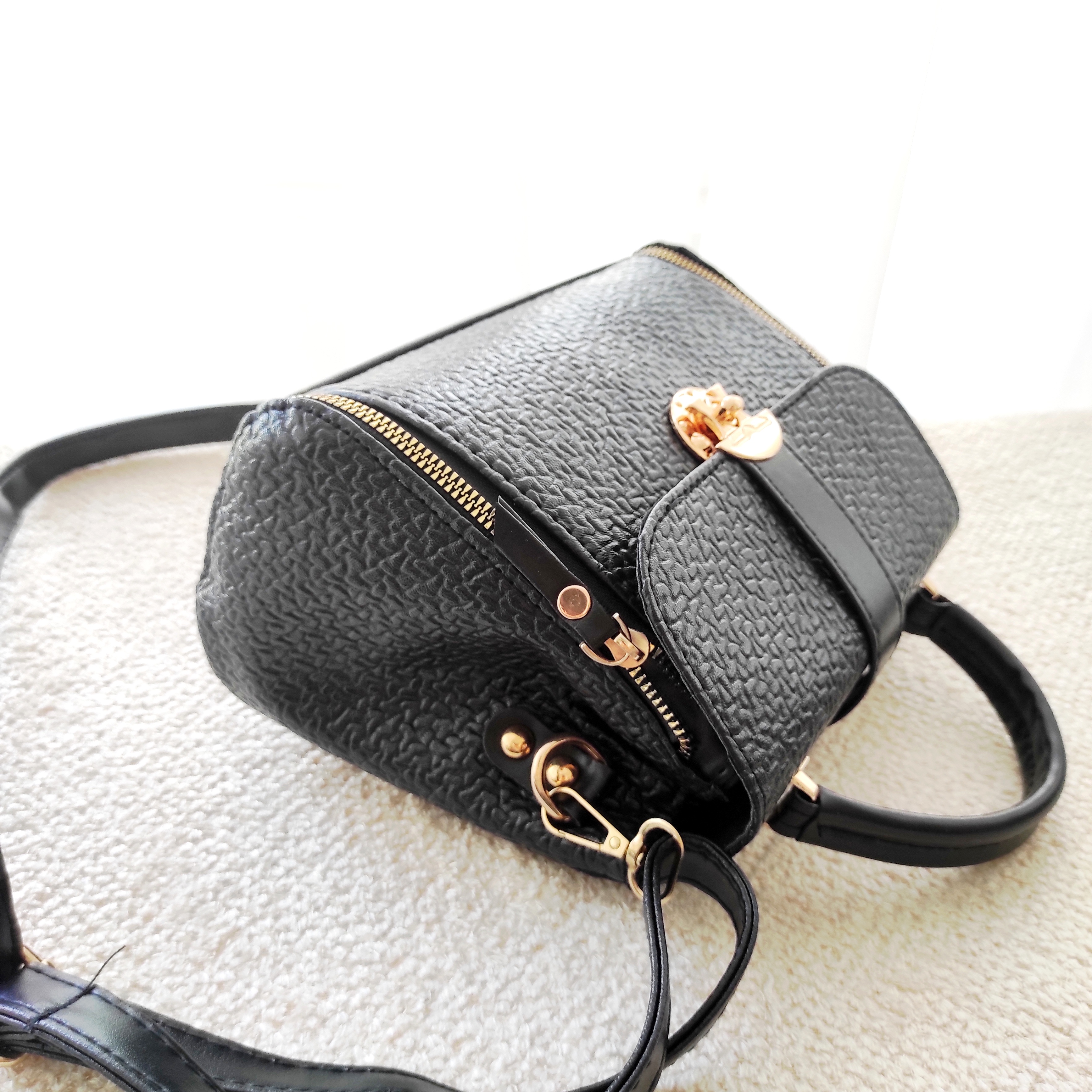 ویژگی های ظاهری کیف : ابعاد کیف 12*18*22 بوده که برای استفاده ی رسمی روزمره بسیار عالی است . جنس و دوخت کیف و همچنین یراق آلات و سرزیپ از کوالیتی بالا تولید شده و یراق آلات کیف رنگ ثابت است . نوع بند کیف دارای دو بند کوتاه دستی و بلند دوشی (قابل جدا شدن) میباشد و طوری طراحی شده که برای استفاده ی طولانی مدت ، بدون فشار آوردن روی دوش ، بسیار مناسب است . تعداد جیب کیف دارای دو خانه که با یک زیپ وسط از هم جدا میشود و کل این فضا با یک زیپ اصلی بسته میشود و یک زبانه ی پیچی روی کیف قفل میشود که به زیبایی کیف اضافه میکند .