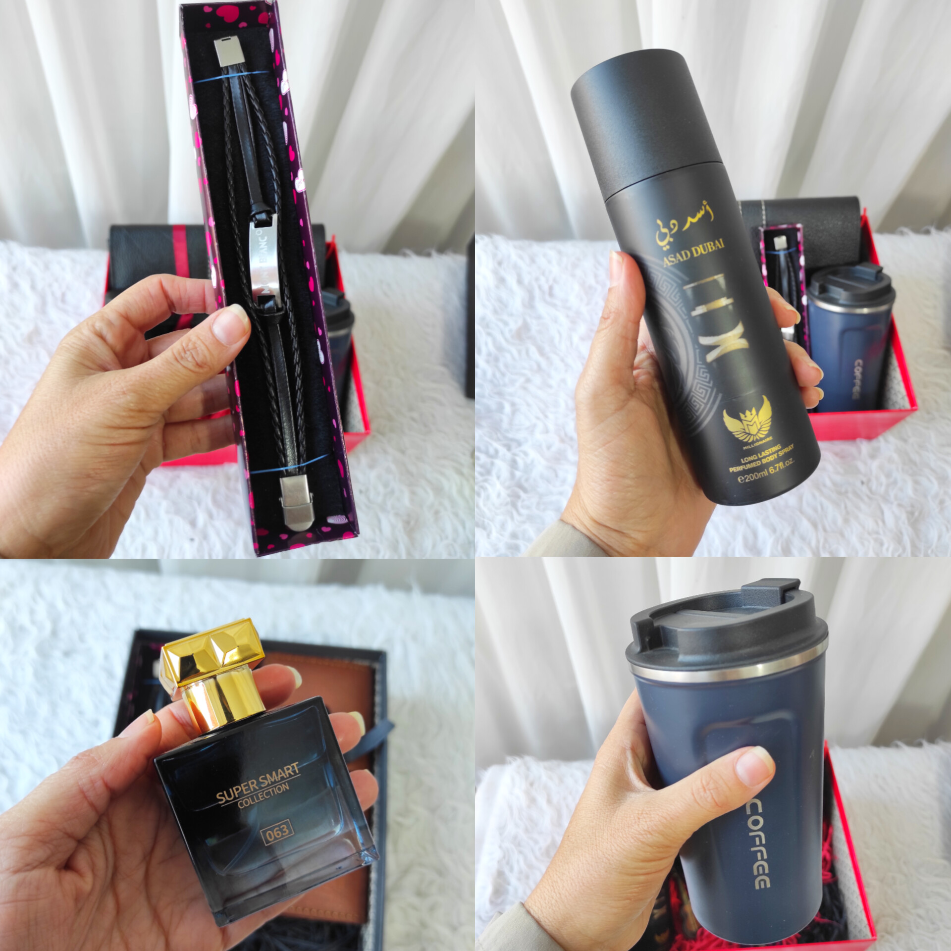 پک شیک و کامل از لوازم مورد نیاز آقایان و مناسب هدیه روز مرد و تولد ، شامل اقلام لوکس و عالی ، کیف مدارک جادار ، اسپری خوش بو و پرفروش مردانه ،ادکلن خوش بو و خاص ، آویز خرسی و جاکلیدی زیبا که آیتم های مورد نیاز آقایان هست که درصورت ضرورت میتونید اقلام رو کم یا زیاد کنید در این مورد در واتس اپ با ما در ارتباط باشید ! در ضمن ارسال پک های هدیه با پست با جعبه کیبوردی میباشد .